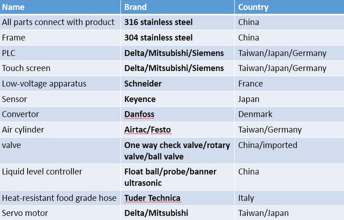 3. Mahsulot bilan aloqa qiladigan barcha tarkibiy qismlar 316 L zanglamaydigan po'latdan yasalgan va CNC mashinalari tomonidan qayta ishlangan.